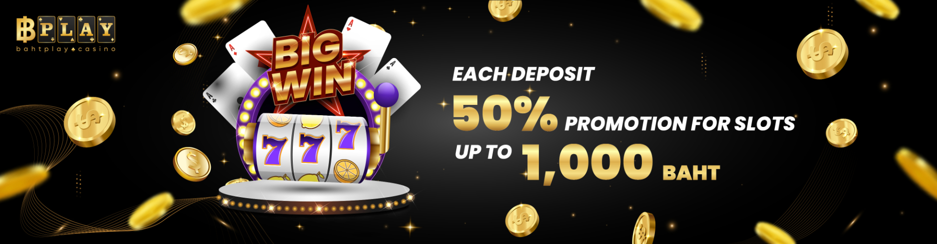 为庆祝泰国最新网上赌场BAHTPLAY的推出,我们为参与BAHTPLAY的新会员提供了史无前例的促销活动,他们将获得50%的欢迎奖金,最高可达1,000泰铢!